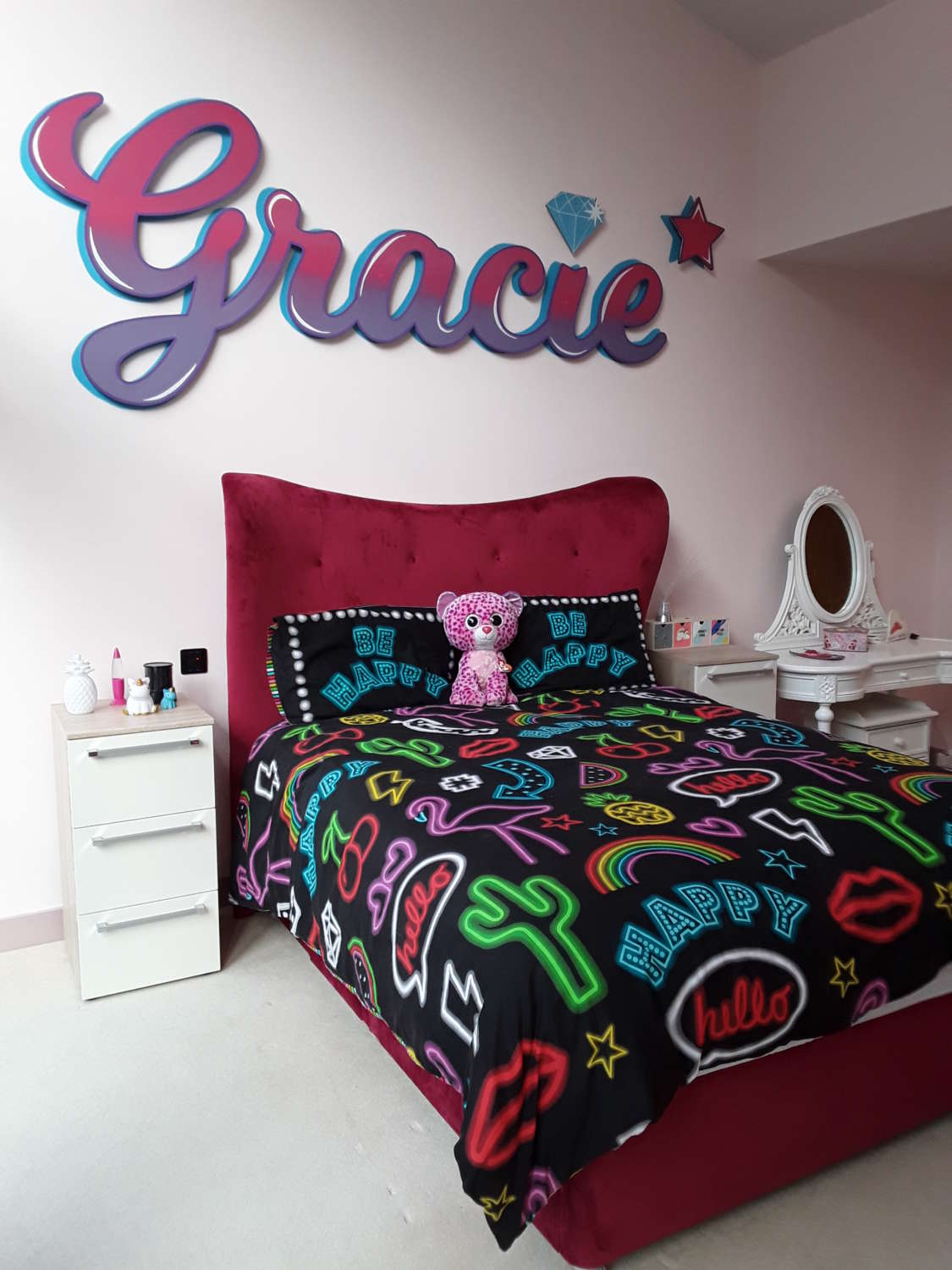 3D laser cut and hand painted typographical name mural, for child’s bedroom in Branksome, Dorset.